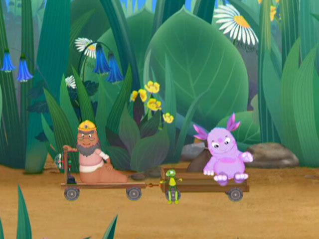 Дядя Корней изобрел заводной самокат. Лунтик и Кузя хотят научиться управлять этим изобретением.